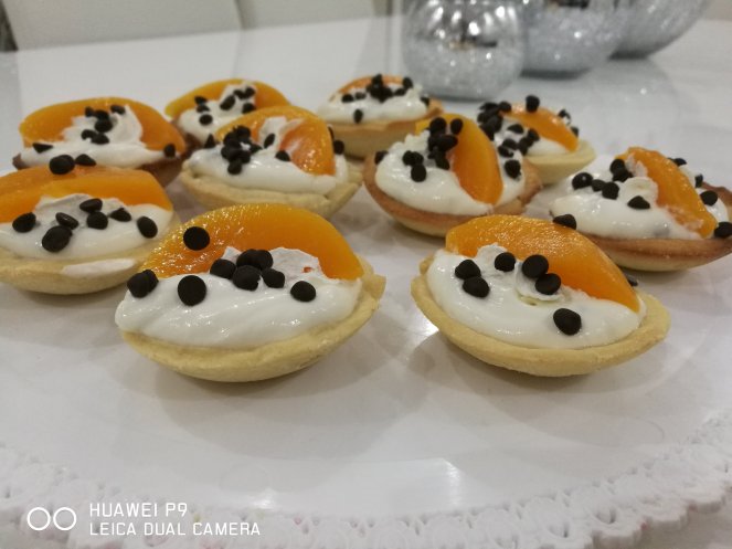 Questi cestini sono ideali per un dolce al momento…sono facili da fate e l’aspetto fa la sua parte. Onestamente la frolla è quella classica… friabile e adattabile a tutto. però io ho preferito farli a cestino e ripieni di ricotta,panna, gocce di cioccolato e succo di pesche sciroppate. In ultimo le ho messe x decoro.
