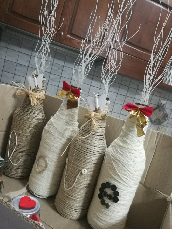 lavori natalizi x la scuola. Bottiglie di birra decorate