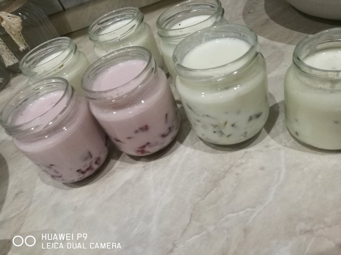 Ecco qui la seconda fase dei miei yogurt. Aromatizzati a fragola ,kiwi, vaniglia e stracciatella. Ho amalgamato yogurt bianco greco con latte(solito procedimento) poi suddiviso in Contenitori e creato i gusti diversi. Per la stracciatella e vaniglia ho usato l’aroma più le scaglie di cioccolato. Per il gusto fragola ho usato una confezione di fragole fresche e 100 di zucchero. Ho fatto caramellare per 5 minuti e fatto raffreddare. Stesso procedimento x il gusto kiwi.